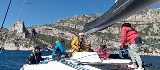 Derniers bords dans la rade avant de retrouver le Port de Corbières. Débriefing, partage d’expériences et fin du stage en fin d’après-midi, vers 17h. Une aventure complète mêlant navigation, découverte, et autonomie en mer.